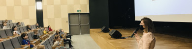 Uczniów klas młodszych zaprosiłyśmy natomiast na zajęcia, które odbyły się w sali widowiskowej naszej szkoły. Dynamiczne przedstawienie statycznych treści kształcenia, czyli ożywianie i dynamizowanie informacji za pomocą filmu oraz prezentacji, stało się punktem wyjścia do dialogu pomiędzy uczniami.