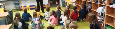 W ostatnim czasie świetlicę szkolną odwiedził Pan ze Straży Miejskiej UM w Lublinie. Zapoznał uczniów z zasadami bezpiecznego poruszania się na hulajnodze oraz na rowerze w ruchu drogowym. Pobocza, przejścia dla pieszych, a nawet osiedlowe uliczki, to miejsca, po których dzieci powinny umieć się poruszać zgodnie z przepisami ruchu drogowego. Przestrzeganie tych zasad może uratować życie. Na zakończenie Pan przeczytał dzieciom fragmenty książki Jana Brzechwy pt. "Akademia Pana Kleksa".